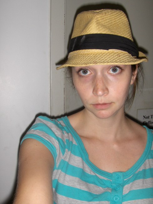 My ONLY complaint about the whole day is that they forgot to mention to me the New York State law that says that anyone who is handling/preparing food (this includes baristas) has to have 70% of their head covered at any given time. I obviously had not brought a hat with me to work. I’m just not a hat person. They directed me to a drawer with some spare hats. My choice was between a Yankees hat (NEVER) or this straw fedora. I have nothing against straw fedoras or fedoras in general. They are just not my style, and this one didn’t go with what I was wearing at all. I felt ridiculous in this hat. But I promptly bought some head scarves and bandannas the next day that fit my style more appropriately.