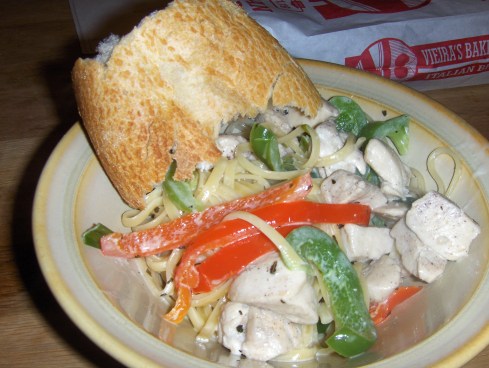 Eating out in New York gets old, fast. So for dinner I made homemade Cajun Chicken Pasta. Another recipe from allrecipes.com. It turned out well, although I should have let the sauce sit longer to thicken, and I wish I had grilled the chicken longer.