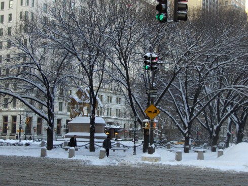 Another overreaction to weather. On Monday, they predicted half a foot of snow on Wednesday. By Tuesday night, I heard reports that it would be a foot and a half in one night. Businesses were preparing to close, people were stocking up. Travis called it at 4 inches. It snowed over night and definitely didn’t continue into the next day. A winter wonderland, indeed.