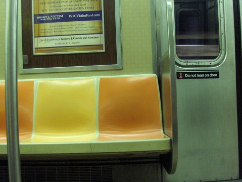 Most of the subways in New York are rather new and have a blue color scheme. Every once in a while though, one can find an old train, like this one that I took to Columbus Circle. I love the old orange seats.