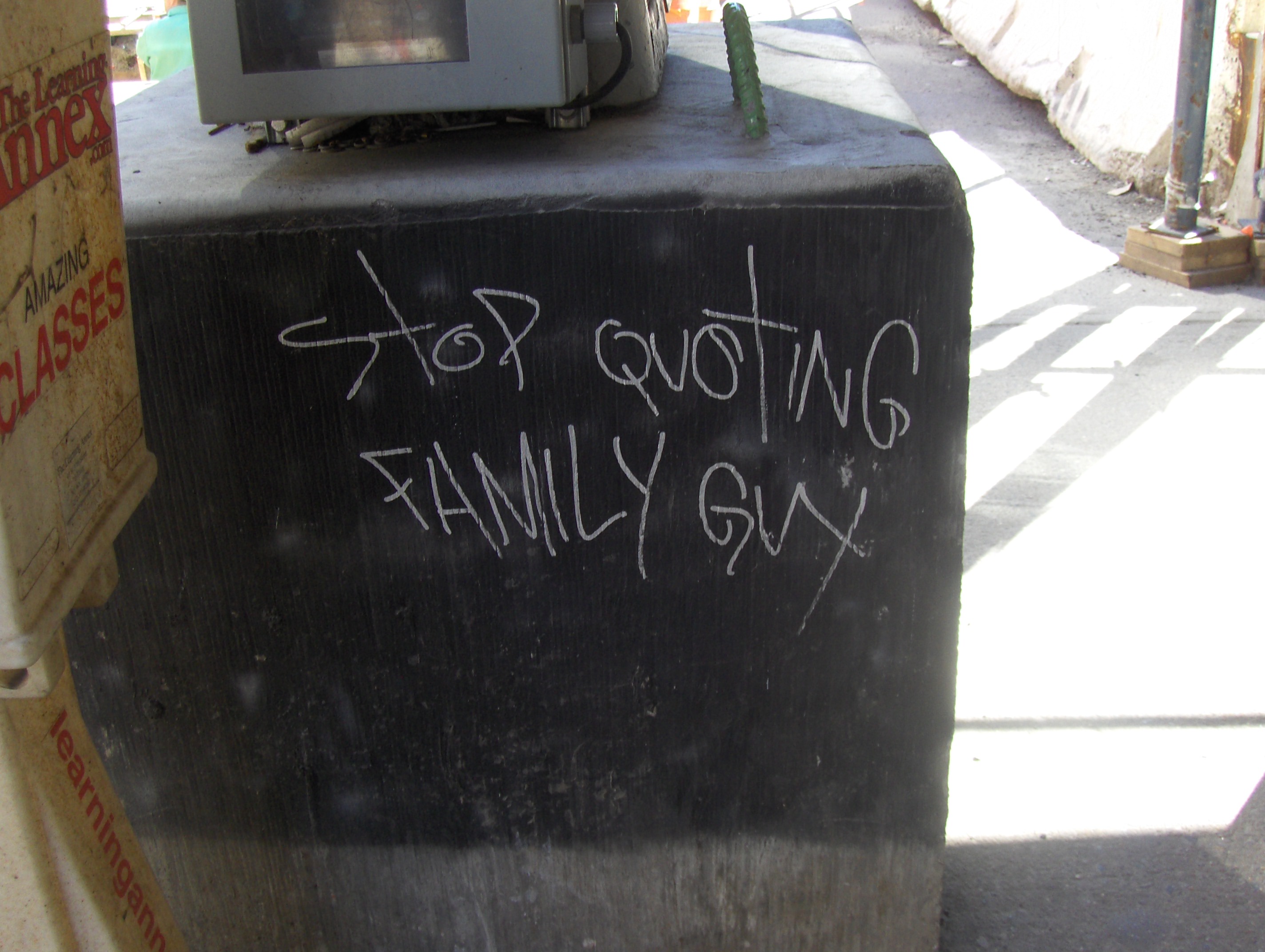Ever since watching “Exit through the Gift Shop,” I’ve been keeping an eye out for street art. This isn’t necessarily art per se, but I found it amusing. Somebody has had enough.