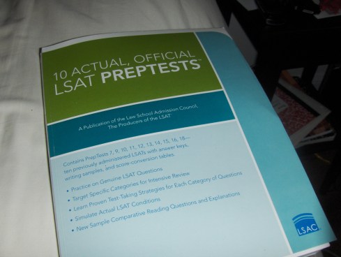 Why not, eh? I’ve always considered law school, and I just want something to work on. I still write, but I don’t know where that is going, and I just want to be back at school, learning something new. So, why not? I took the three hour chunk out of my Sunday, sat down and took my first practice exam just to see where I stand. It was ROUGH. But, I didn’t do too bad. I did amazing on the Arguments Section.