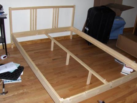 I spent hours putting it together, breaking only to shower, head out to buy a hammer at the hardware store and grab a cup of coffee. I had such a smile on my face the whole time, thinking “Look at me! I’m strong and independent. I am making my bed, and I can’t wait to lay in it!” Roommate Shannon came in to check on me a couple of times and marvel at my progress. Finally, the frame was complete. I asked for her help to add the bed slats on top. As we are laying them out, I realize that they are much to wide. Worried, I call Ikea. I give them my order number and everything, and then all I hear is laughter. LAUGHTER. The Ikea phone-lady was laughing at me. Between chuckles she said, “You ordered a FULL size bed frame, and a QUEEN size mattress, and QUEEN size bed slats.”
