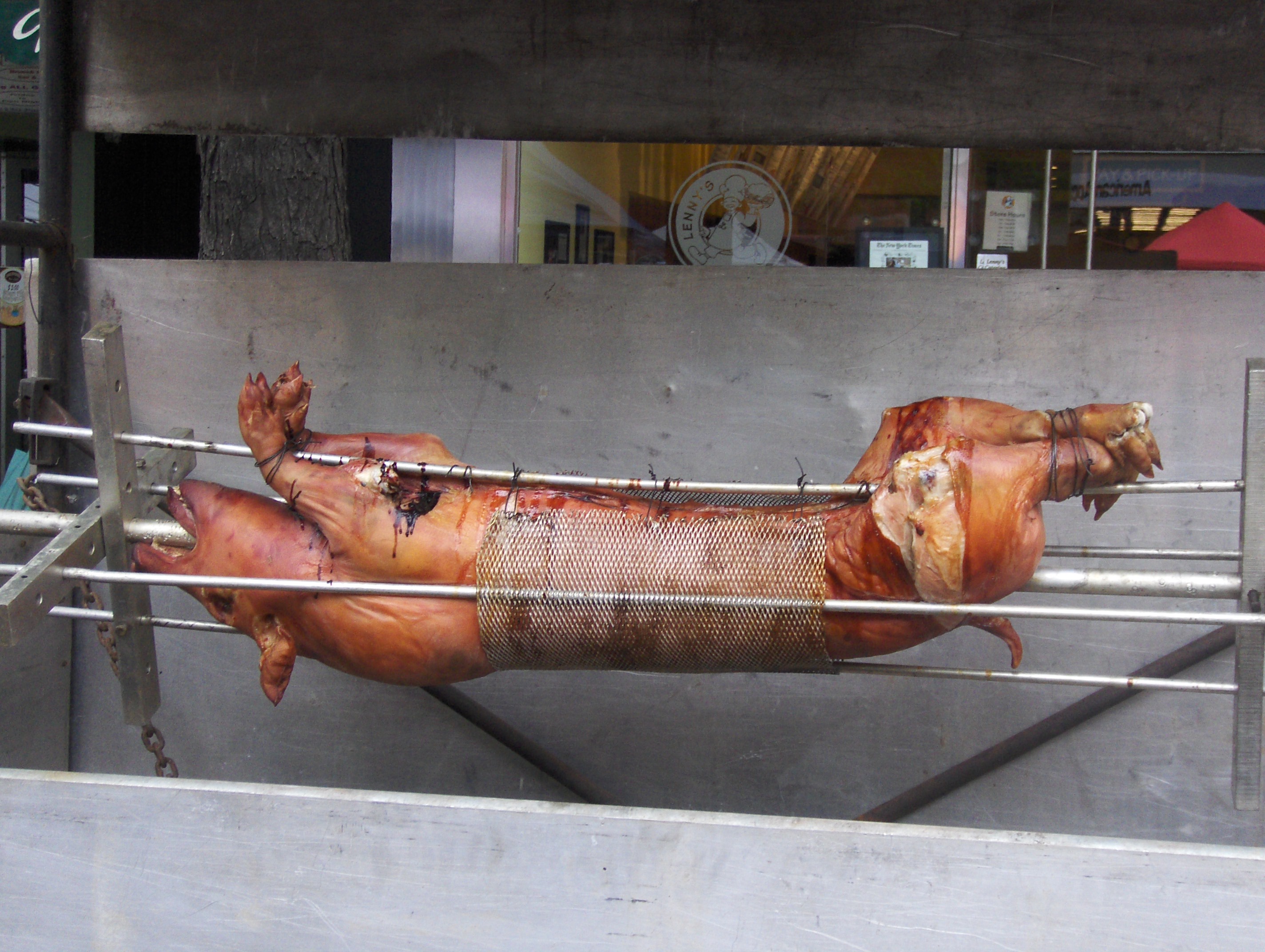I paid her. (Yes, I know wish I had the gumption to tell her that she didn’t deserve my money, but I’m just too nice.) The rest of the day was fun. I met up with the food blog creator who was such an inspiration. I put a lot of effort into Dicey Weather, but this girl was going all out, and I really admired her for it and am excited to contribute. We ate deep fried oreos, corn on the cob, German Bratwurst and saw that pig get roasted.