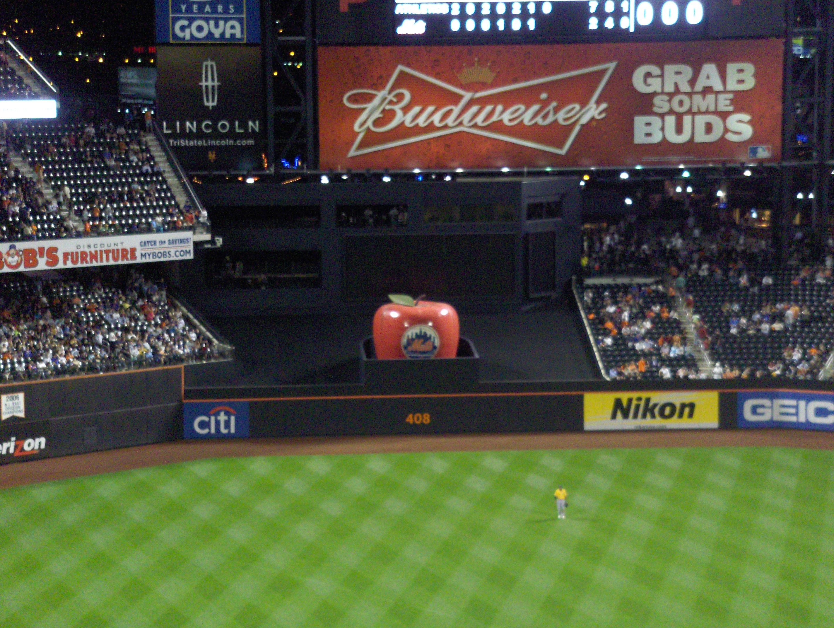 My friend Harry had an extra ticket to a Mets game and invited me to come along. We lost horribly, but I did enjoy the awesome Jason Bay triple! During the seventh inning stretch, the Mets apple ascends. I am a fan, but not nearly as big a fan as I am of the singing baseball at the Reno Aces stadium. There’s something endearing about that inflatable, bouncing thing.