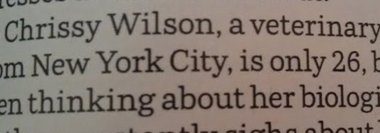 I have waited for this day for as long as I can remember. Seeing my name in a national magazine, in a full-length article. When the June issue of Cosmopolitan came out, I ran out on my lunch break to the drug store to buy the magazine. There it was, on page 197, Chrissy Wilson. Only, I didn’t write the article.