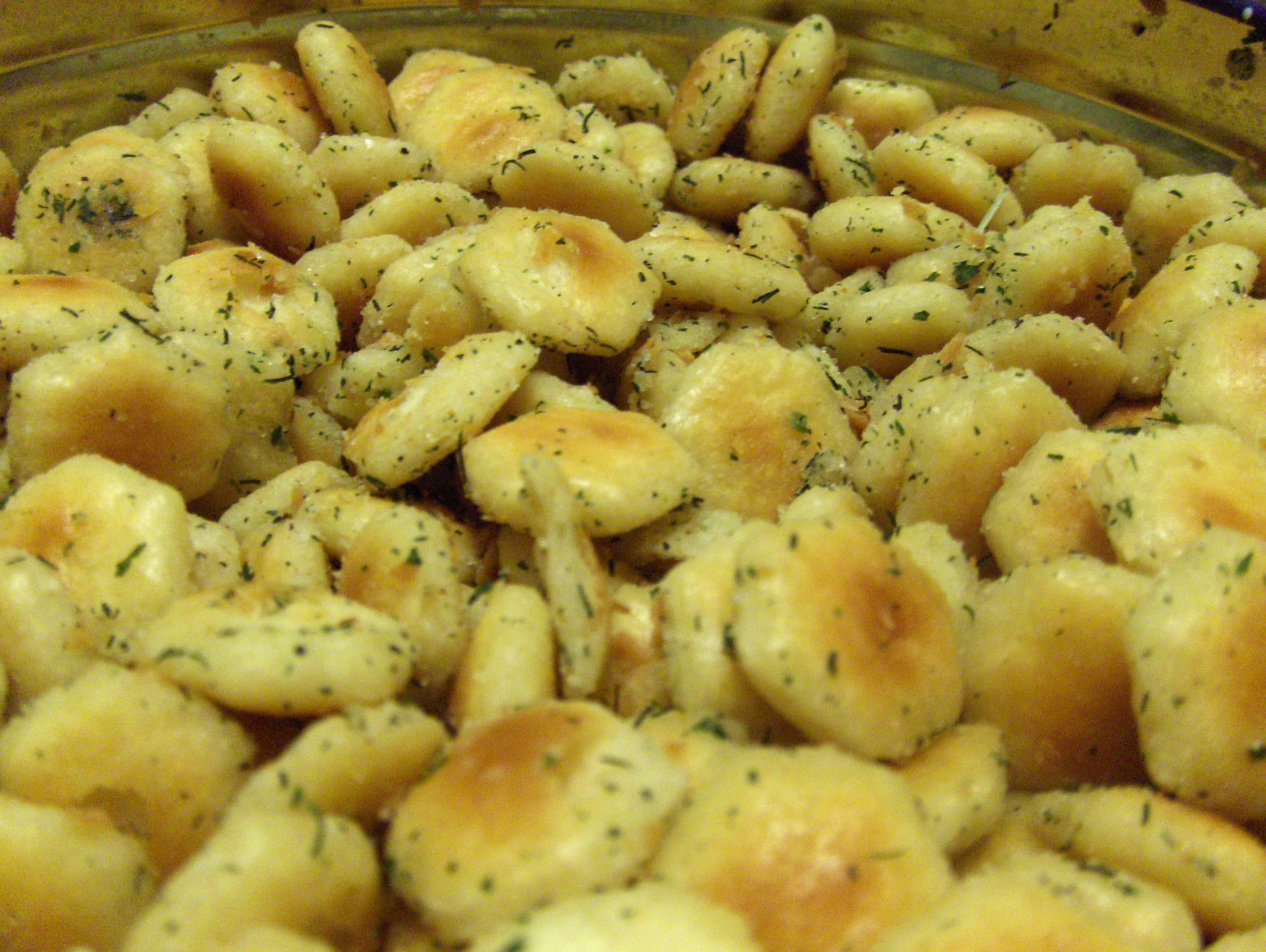 My mom told me that she was sending me a care package from home with Christmas necessities. I immediately began hoping that her world famous Oyster Cracker Mix would be in the package. It was! These are addictive little suckers. They basically have olive oil, dill, and garlic powder soaked into them. Fantastic! I’ve made them before on my own. Somehow, though, food just tastes better when your mother makes it for you.